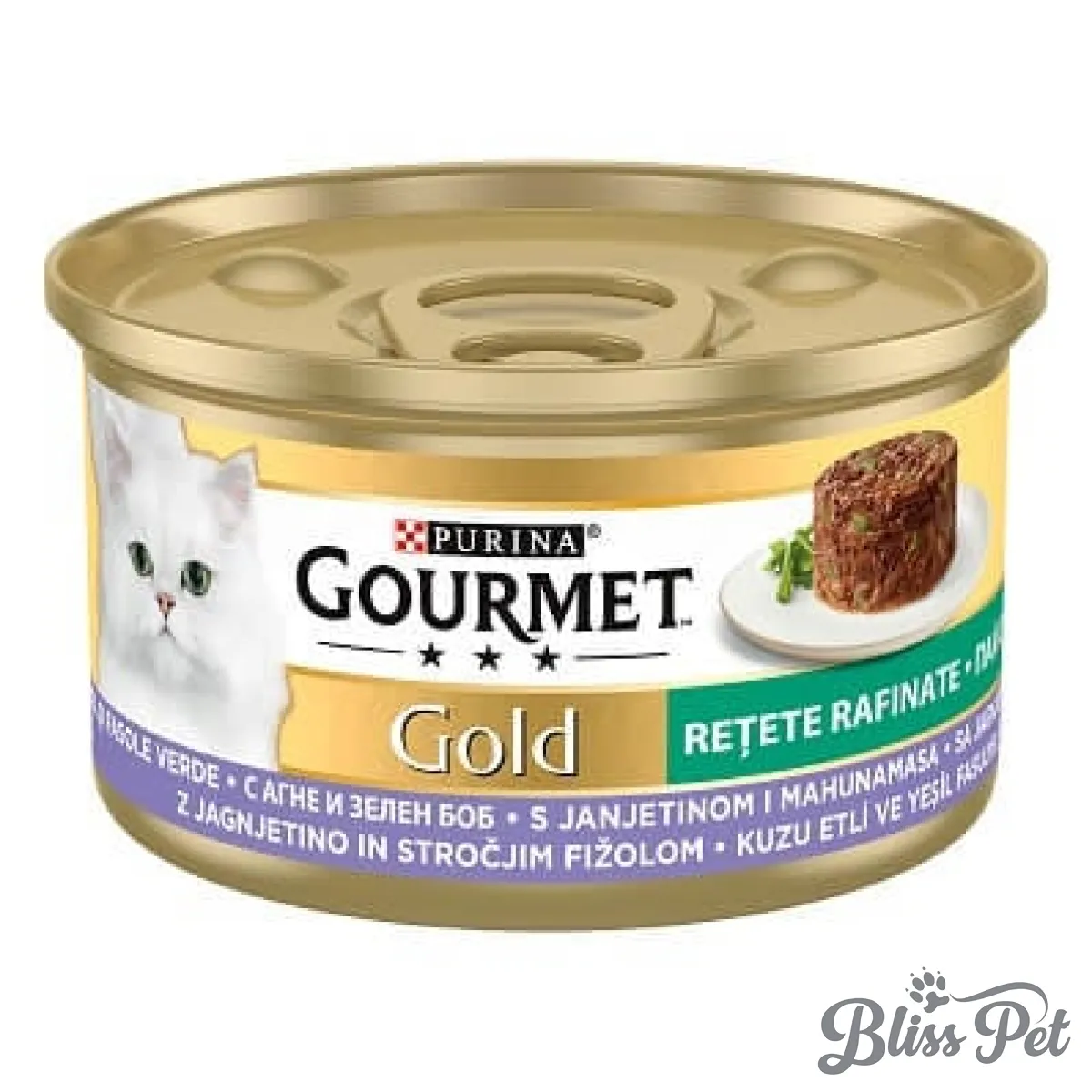 Gourmet gold bucatele in sos, miel si fasole 85 gr Gourmet Gold Bucățele în sos e o hrană delicioasă și irezistibilă pentru pisici. Rețetele unice cu ingrediente de calitate înaltă vor fi foarte apreciate de pisicuța ta. Pisicile iubesc sosul! Iar pentru a nu deveni plictisitoare, Gourmet Gold este disponibilă în mai multe sortimente, astfel că-i vei putea oferi pisicii meniuri variate. Conservele de 85 g sunt optime pentru o masă – mâncare mereu proaspătă în bol.