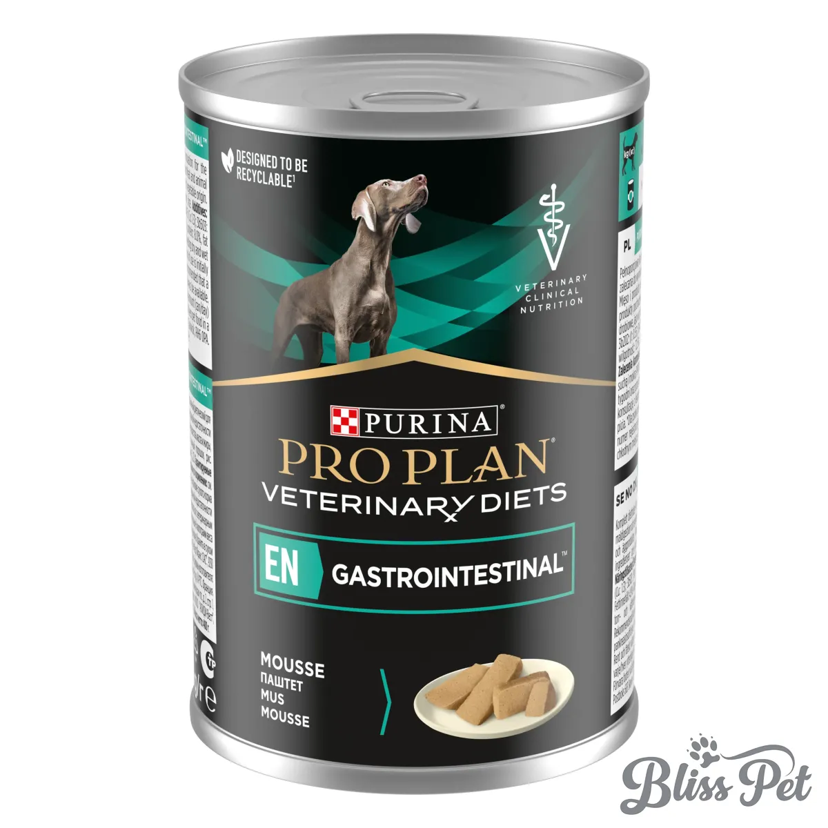 - Purina Veterinary Diets EN este o hrană umedă completă pentru câini, formulate stiințific pentru a sprijini câinii adulți cu tulburări intestinale.