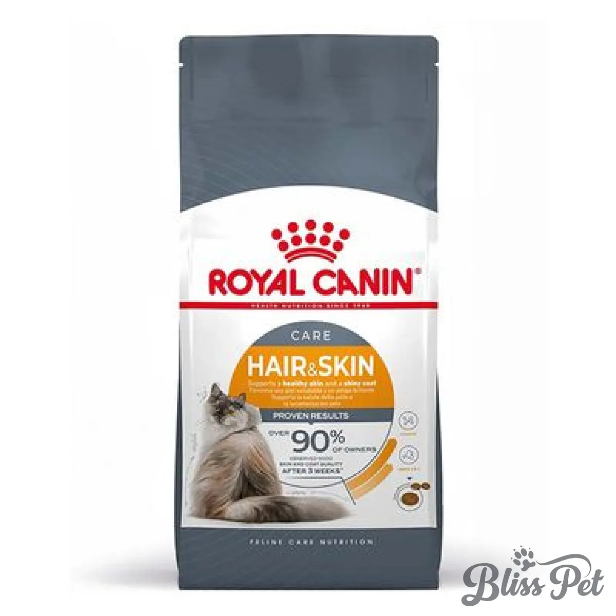 Rețeta hranei de la Royal Canin Hair & Skin Care a fost special alcătuită pentru a sprijini îngrijirea pielii și blănii. Acizi grași Omega-3 și 6 importanți, inclusiv GLA, EPA și DHA, pot contribui la o blană strălucitoare. În același timp, cocktailul special de vitamine inclus poate susține funcția de barieră a pielii, care protejează pisica de influențele mediului. Royal Canin Hair & Skin Care are un efect dovedit*: peste 90% dintre stăpânii de pisici au observat o calitate mai bună a pielii și blănii după 3 săptămâni de hrănire cu această hrană (*studiu intern al Royal Canin).
